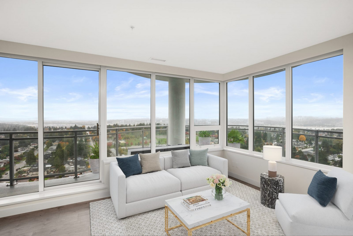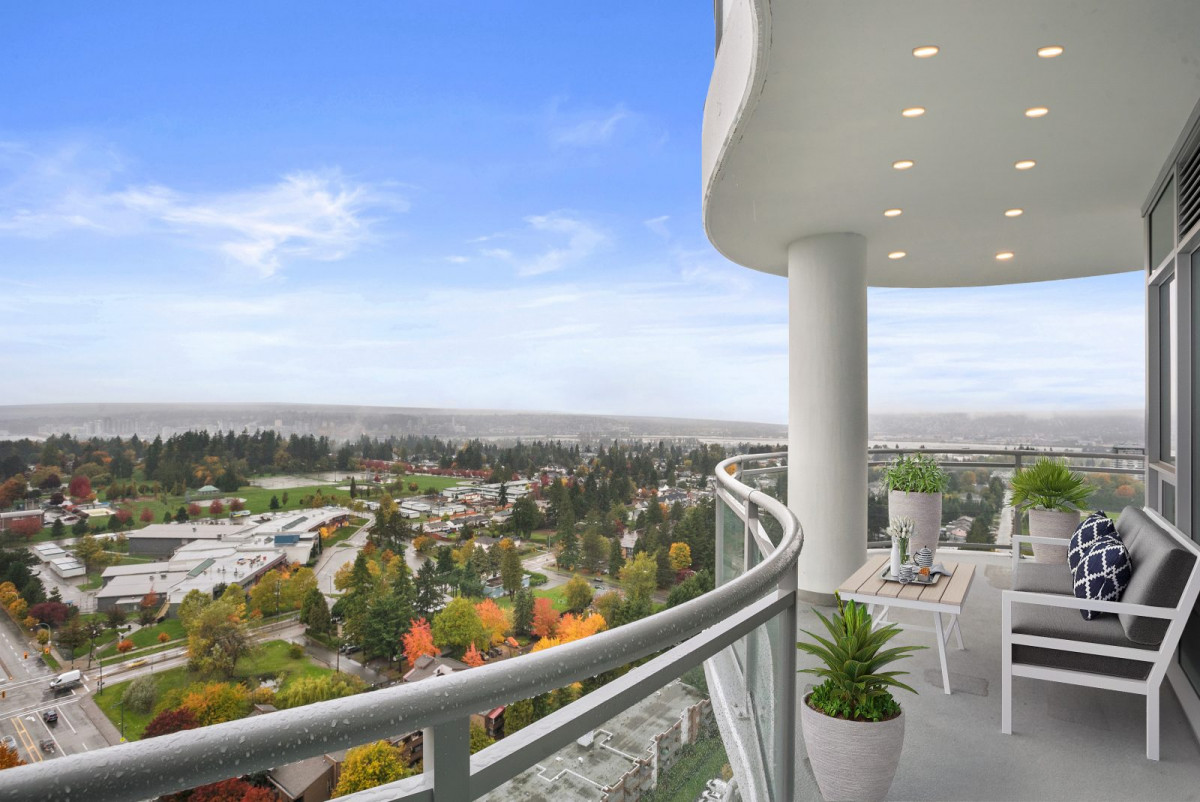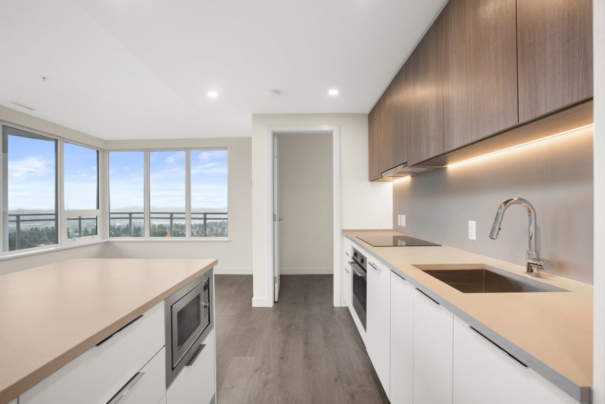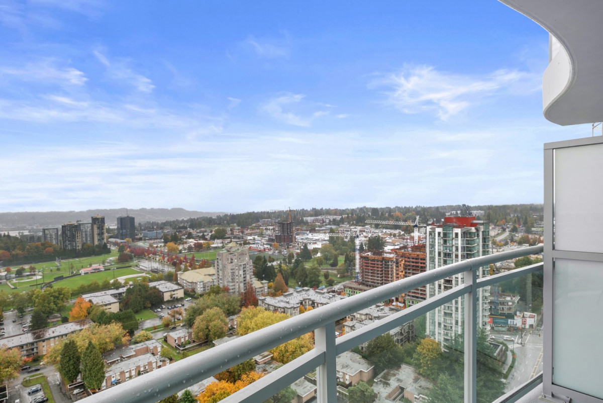LINEA by RISE. This stunning 3 bed 2 bath condo CENTRALLY located in the rapidly growing Surrey City Central Area boasts PANORAMIC PENTHOUSE VIEWS from the 26th floor . The luxurious tower features an endless list of amenities like a Gym, Yoga room, Media Room, Meeting Rooms and roof top lounge to entertain on. This CORNER UNIT boasts high end appliances, double the fridge size of most units, kitchen island w/ stone countertops, ensuite laundry, Wireless SMART THERMOSTAT to control your heat & AIR CONDITIONING, and a massive WRAP AROUND 283 sqft PATIO to take advantage of the endless views. Walking distance to all types of Shopping & Restaurants, close to SFU & KPU Campuses,Transit & Skytrain; this is a MUST SEE. This Unit won’t last long.